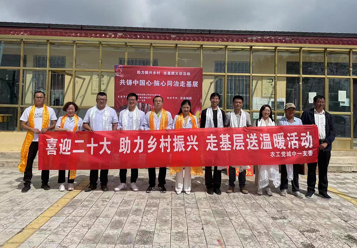 经驻村工作队协调联系,8月11日农工党西宁市委、农工党城中一支委赴青海开放大学乡村振兴连点帮扶村海南州贵德县尕让乡亦什扎村开展“喜迎二十大 助力乡村振兴 走基层送温暖”活动,为当地少数民族群众义诊体检,并发放了价值2.1万元的药品。市委会副主委梅利、秘书长谈成录参加活动,青海开放大学驻村“第一书记”梅林陪同。