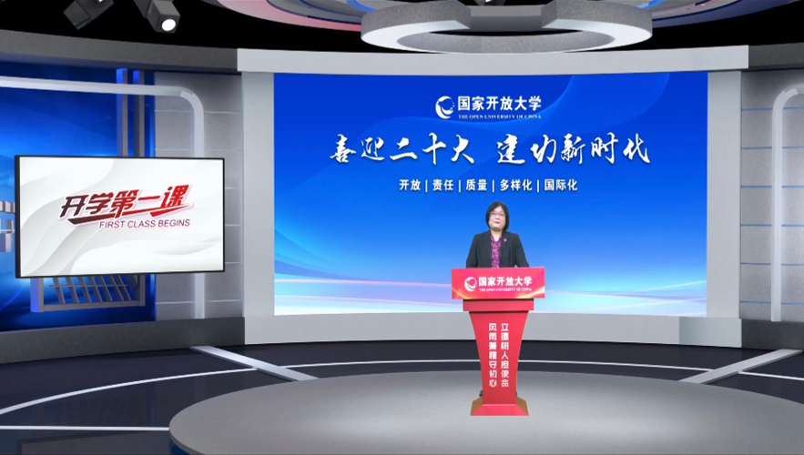 2022年8月29日上午,国家开放大学党委委员、副校长范贤睿通过视频直播面向全国开放大学师生以《喜迎二十大,建功新时代”》为题讲授了“开学第一课”。我校组织全省系统内教职员工和学生通过手机、电脑等终端在线收看、全程聆听。