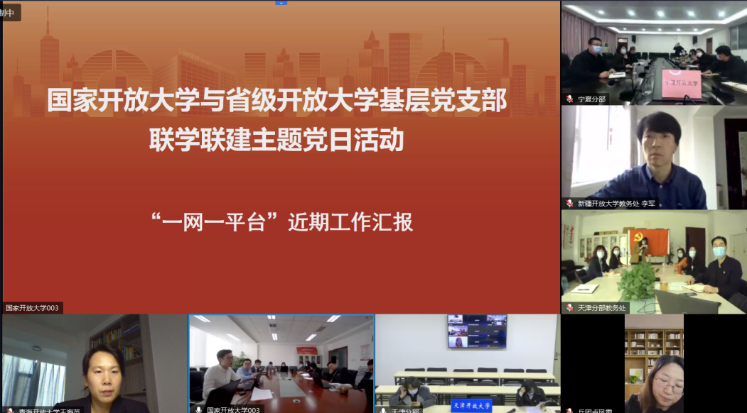 国家开放大学信息化部介绍了“一网一平台”近期相关工作,其余8所开放大学信息化党支部分别交流了各校信息化建设情况和工作经验,提出了“一网一平台”推进过程中遇到的问题及建议。