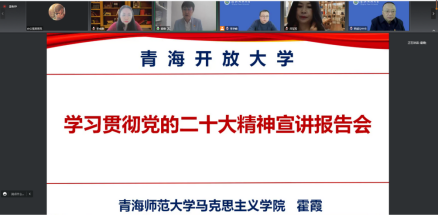 根据全省学习宣传贯彻党的二十大精神宣讲工作总体部署,青海开放大学邀请省委宣讲团成员、青海师范大学马克思主义学院教研室主任、副教授霍霞以线上直播形式作党的二十大精神宣讲报告,全校130余名教职工聆听报告,宣讲报告会由校党委副书记韩斌主持。