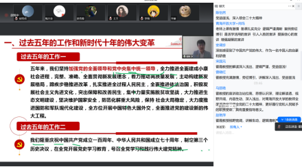 霍霞从大会主题、“三个务必”、二十大报告总体布局、过去五年的工作和新时代十年的伟大变革、开辟马克思主义中国化时代化新境界、新时代新征程中国共产党的使命任务、全面建设社会主义现代化国家的重大任务等7个方面深入解读阐释了党的二十大精神,宣讲报告主题鲜明、逻辑严密、深入浅出、引人入胜,具有很强的理论性、针对性、指导性,对全校教职工深刻理解把握党的二十大精神、更好履行党和人民赋予的职责使命具有重要指导意义。整个宣讲过程气氛热烈,全体教职工纷纷在留言区交流,就学习理解宣讲报告会、进一步贯彻落实好党的二十大精神谈体会谈感受。