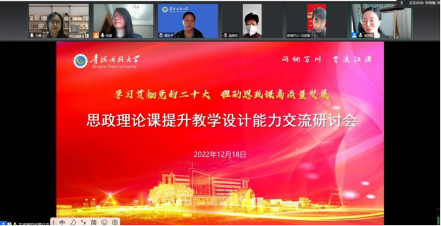 为贯彻落实高校立德树人根本任务,发挥思政课“关键课程”作用,提升思政教师教学能力,提高人才培养质量,2022年12月18日,青海开放大学思政部召开思政理论课提升教学设计能力交流研讨会。党委书记庞晓玲、副书记韩斌、副校长刘建红、人文学院院长帖征及思政部全体教师参加了会议。