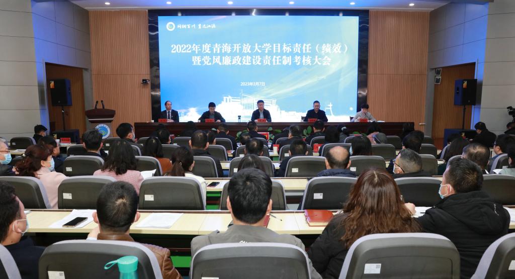 青海开放大学党委副书记、校长尚玛代表领导班子作2022年度目标责任(绩效)完成情况和党风廉政建设责任制落实情况汇报。他说,一年来,在省委、省政府和省纪委的坚强领导下,在省教育厅等有关部门大力支持下,学校以习近平新时代中国特色社会主义思想为指导,全面学习贯彻党的十九大和十九届历次全会精神,认真学习领会党的二十大及省第十四次党代会精神,认真履行管党治党、办学治校主体责任,严格落实党风廉政建设责任制,聚力服务全民终身学习,切实强化使命担当,全面完成13类年度目标考核任务,有力推动学校工作高质量发展。他表示,青海开放大学将坚持以习近平新时代中国特色社会主义思想为指导,深入学习宣传贯彻党的二十大精神,深刻理解把握习近平新时代中国特色社会主义思想的世界观和方法论,聚焦政治建设、坚持思想引领、推动高质量发展、从严管党治校,结合转型发展方案和“十四五”发展规划目标任务,团结带领全校教职工开拓进取、奋发有为,奋力建设高质量有特色开放大学,为加快建设“六个现代化新青海”作出了开大贡献。