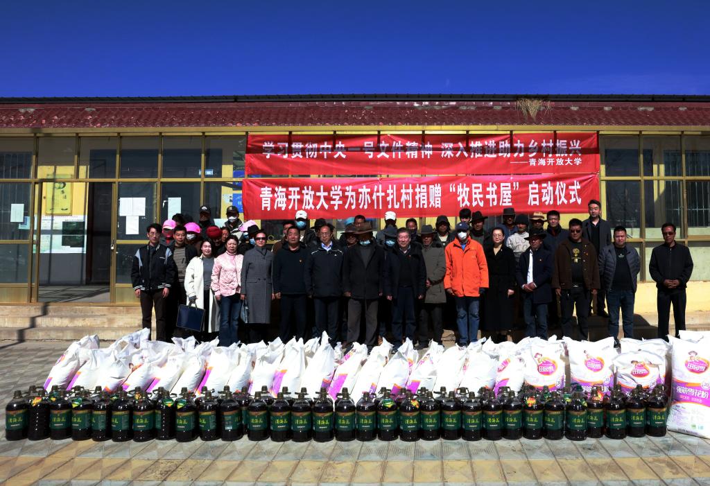 为进一步宣传党的好政策,传播党的好声音,巩固拓展脱贫攻坚成果同乡村振兴有效衔接,更好地为群众办实事、解难事、做好事,切实把党的关心关怀落到实处。2023年3月9日,青海开放大学结合中央一号文件宣讲到联点帮扶的亦什扎村开展帮扶慰问活动并捐赠图书、书桌、书架,举行“牧民书屋”启动仪式。学校党委副书记、校长尚玛,党委委员、副校长刘青及各党支部党员代表共16人参加活动。