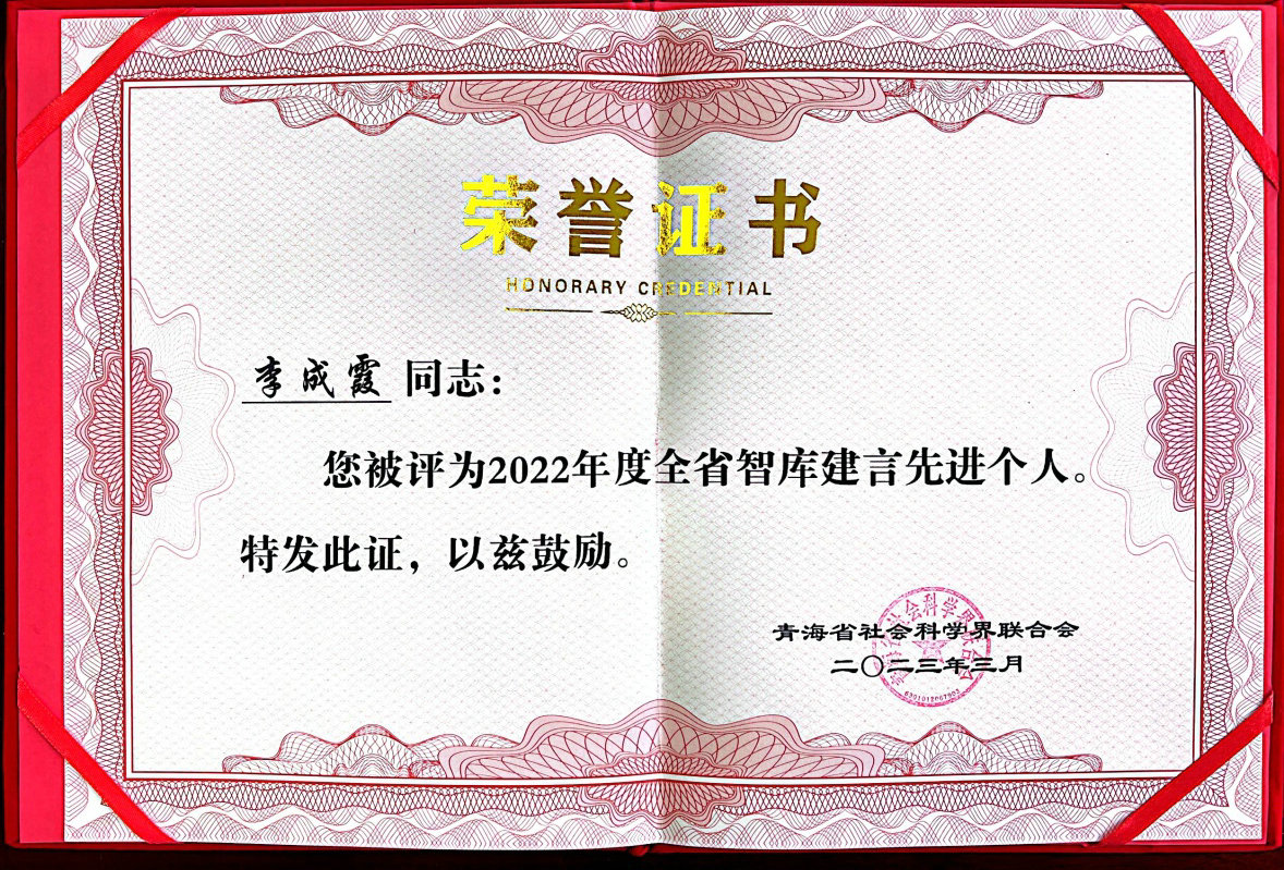 会议对推动青海省哲学社会科学事业发展中有突出贡献的18个先进集体、25名优秀个人进行表彰,青海开放大学荣获“全省智库项目研究先进单位”、吕军莉教授荣获“全省社科项目优秀鉴定专家”称号、李成霞副教授荣获“全省智库建言先进个人”称号。