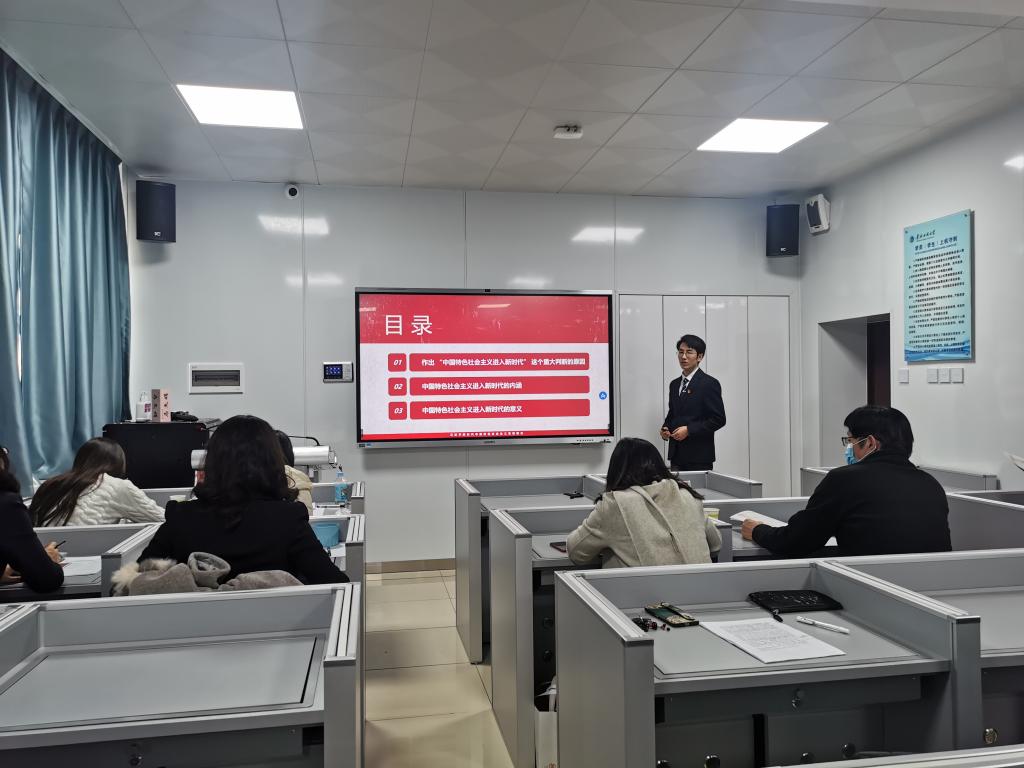 根据《青海开放大学关于举办思政理论课“精彩一课”教学竞赛的通知》安排,3月24日上午,马克思主义学院在学校智慧教室开展2022年度“精彩一课”教学竞赛。校党委书记庞晓玲、宣传部(统战部)部长吕军莉和人文理工学院部分教师观摩了比赛。