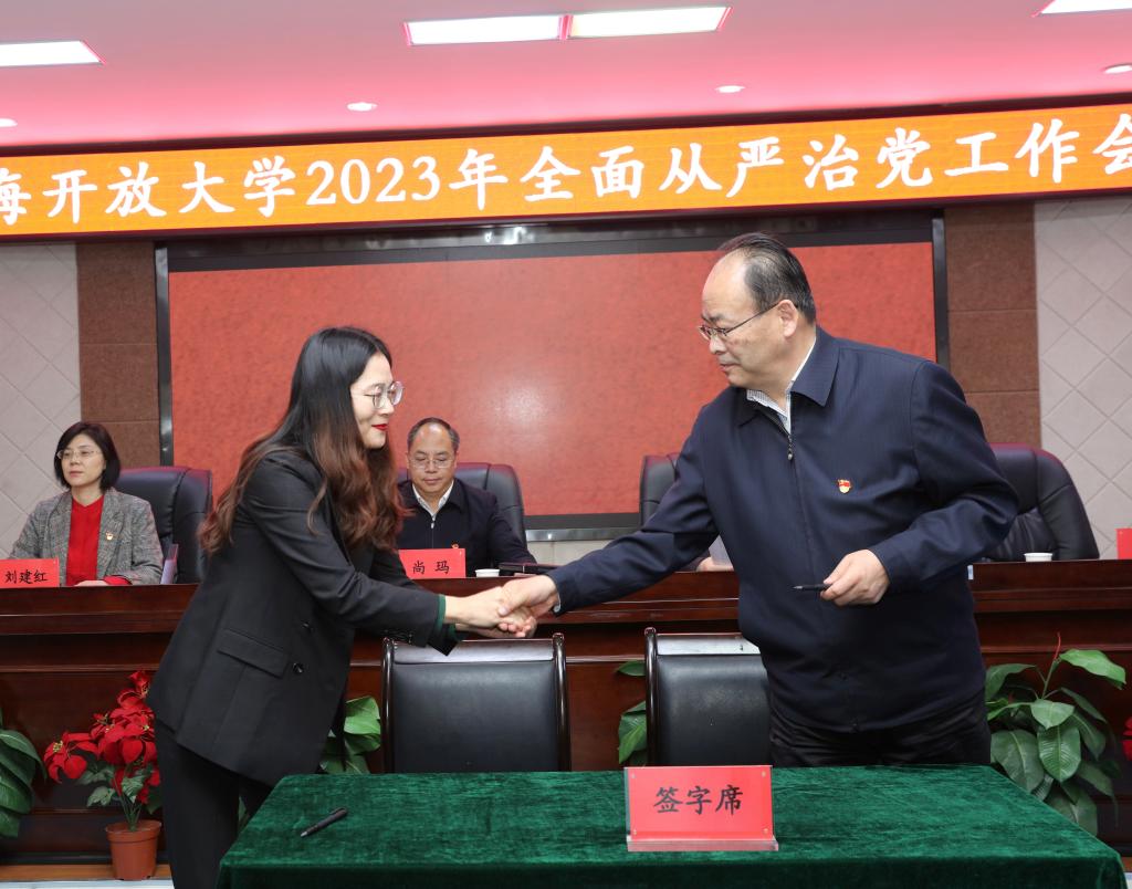 会议以习近平新时代中国特色社会主义思想为指导,传达学习二十届中央纪委二次全会、省十四届纪委二次全会和教育部、全省教育系统2023年度全面从严治党工作会议精神,表彰2022年度党风廉政建设考核优秀部门组织人事处(纪委)、学校办公室、教育信息技术与资源建设中心,签订2023年度党风廉政建设目标责任书。党委副书记、校长尚玛作了主题为《全面从严治党 勇于自我革命 奋力推进学校事业高质量有特色发展》的讲话,回顾总结学校2022年全面从严治党工作,安排部署2023年重点任务。