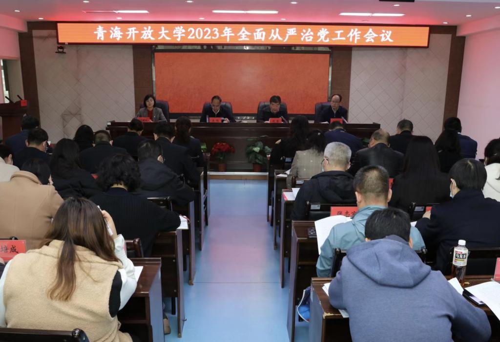 2023年4月24日下午,青海开放大学召开2023年全面从严治党工作会议,校党委班子成员出席会议,全体党员、教职工代表72人参加会议。会议由党委委员、纪委书记、监察专员朱耀国主持。