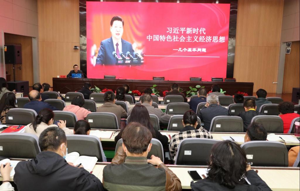5月8日下午,为深入学习领会习近平新时代中国特色社会主义思想深刻内涵,进一步提升思想认识,把握精髓要义。按照学校主题教育读书班安排,青海开放大学质量监控部张旭渡副教授作了题为“习近平新时代中国特色社会主义经济思想——几个基本问题”的辅导讲座。学校主题教育读书班各成员、全校党员和教师聆听了讲座。