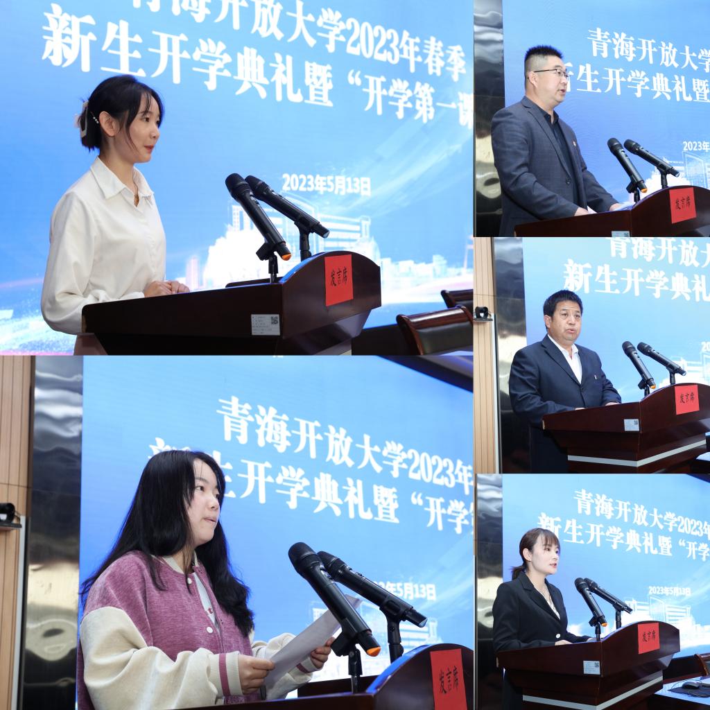 人文理工学院优秀毕业生季鹏、贵德县广播电视大学优秀毕业生王青春、人文理工学院2023春新生代表樊晓梅、平安县广播电视大学2023春新生代表雷婷蕊在开学典礼上作了发言。