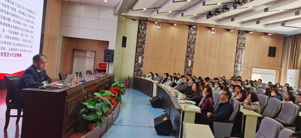 开学典礼结束后,尚玛校长讲授了题为《学习领会贯彻中国共产党第二十次全国代表大会精神》的开学第一课,讲授内容紧密结合习近平新时代中国特色社会主义思想主题教育,从“学习领会贯彻党的二十大报告精神导学、牢牢把握过去五年工作和新时代十年伟大变革的重大意义、牢牢把握习近平新时代中国特色社会主义思想的世界观和方法论、牢牢把握以中国式现代化推进中华民族伟大复兴的使命任务、牢牢把握以伟大自我革命引领伟大社会革命的重要要求、牢牢把握团结奋斗的时代要求”6个方面梳理了党的二十大精神的核心要义。他希望同学们要传承红色基因、坚定理想信念、学好专业知识、不断成长成才,努力为建设中国式现代仳青海篇章贡献才干和力量。