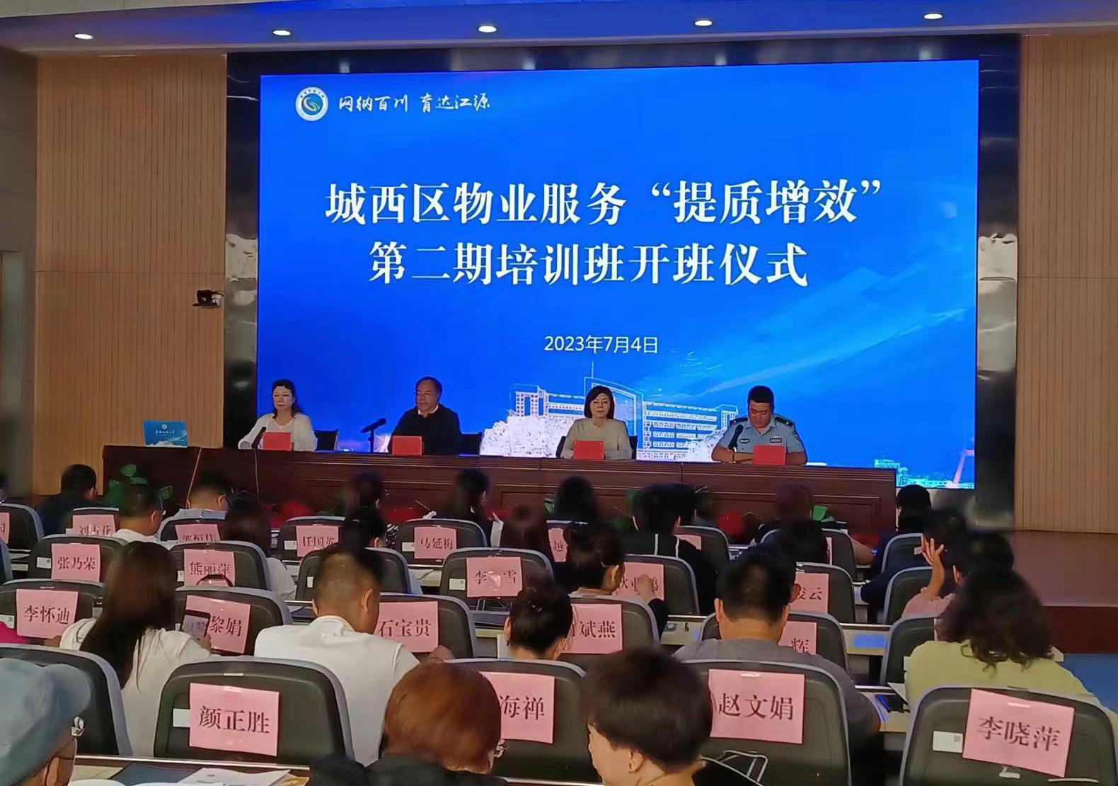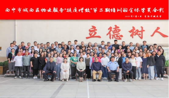 2023年7月4日,由西宁市城西区城乡建设局主办、青海开放大学承办的“城西区建设局物业服务‘提质增效’”第二期培训班举行了开班仪式,青海开放大学党委副书记校长尚玛、校党委委员副校长刘建红、校终身教育服务部主任魏青风、西宁市城西区城乡建设局物业科科长林茂出席开班仪式。来自西宁市各社区和物业服务行业120余人参加培训。