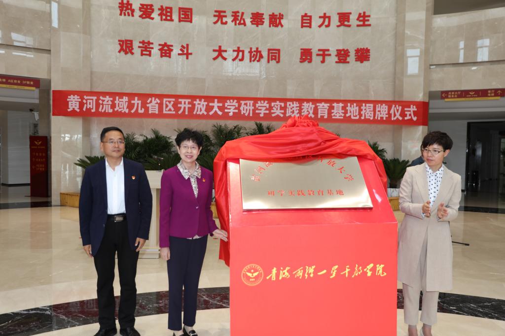 庞晓玲和哈文秀为青海两弹一星干部学院“黄河流域九省区开放大学研学实践教育基地”揭牌。