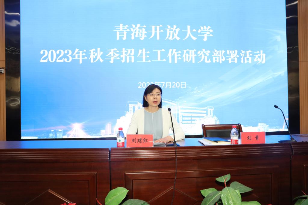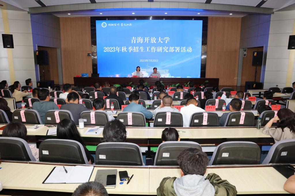 为进一步规范招生工作管理,创新招生工作思路,推动招生工作高质量发展,2023年7月20日,青海开放大学组织开展2023年秋季招生研究部署活动。校党委委员、副校长刘青、刘建红出席活动,全校教职工、全省19所系统电大校领导、招生负责人和招生工作人员共计130余人参加了活动。活动由刘建红主持。