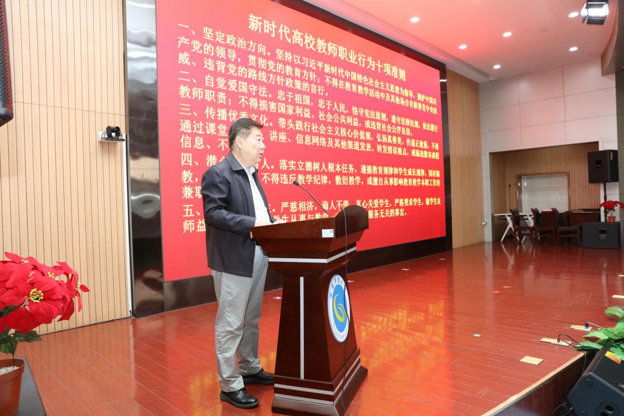 会上举行了校徽佩戴仪式,全体教职工学习了《新时代高校教师职业行为十项准则》、观看了全国教书育人楷模杨士莪的先进事迹,举行了新入职教师宣誓、青年教师导师结对和老教师荣休仪式。