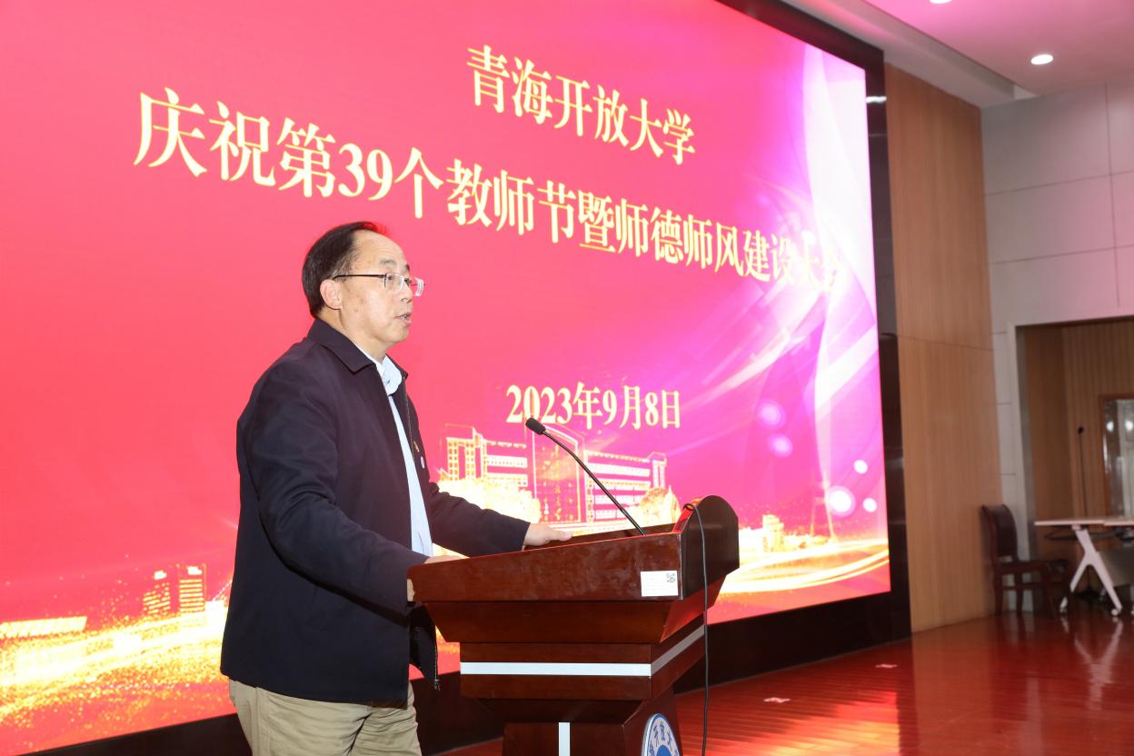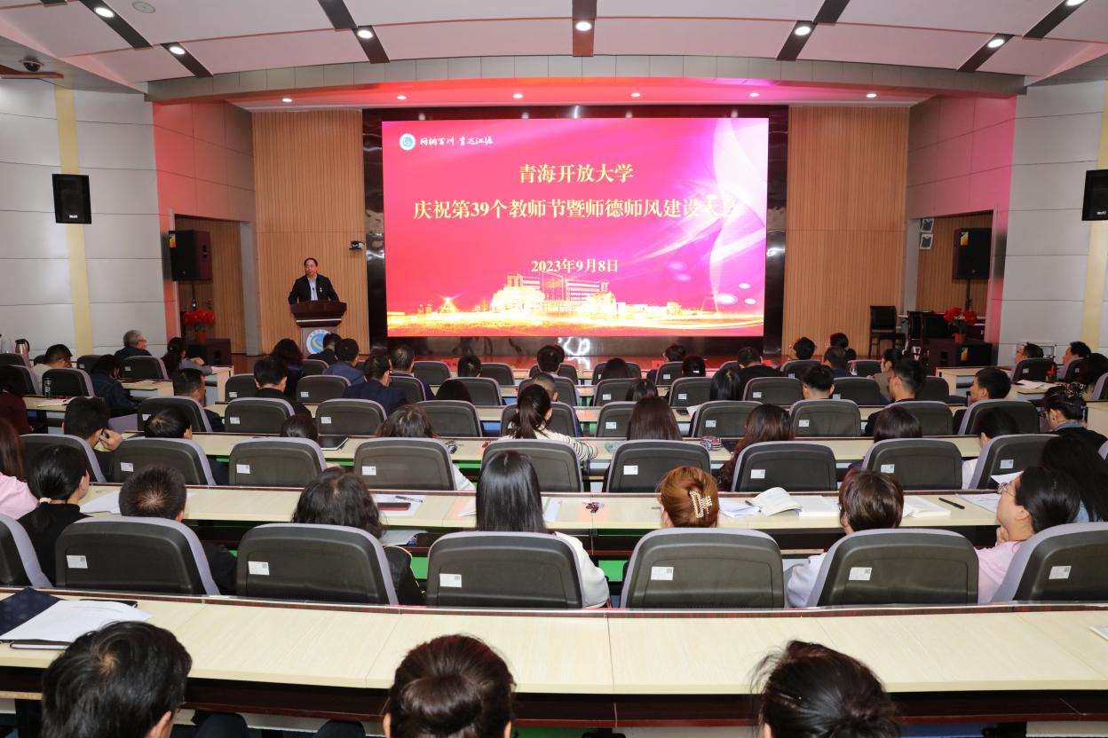 9月8日,青海开放大学以“躬耕教坛、强国有我”为主题,召开庆祝第39个教师节暨师德师风建设大会,开展师德师风教育,激励全校教职工进一步弘扬潜心育人、爱岗敬业精神,增强职业荣耀感、工作责任感。校党委副书记、校长尚玛讲话,向全校教职工和离退休同志致以节日问候和美好祝愿。校党委委员、副校长刘青主持会议。