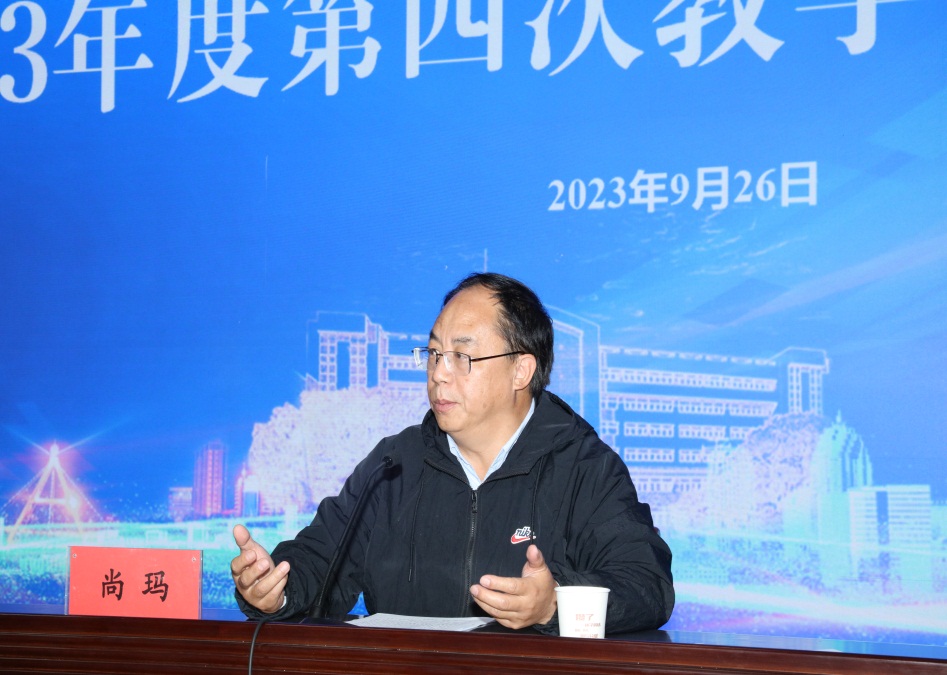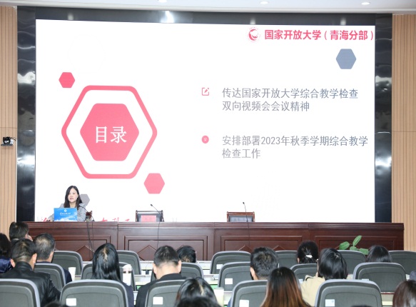 2023年9月26日,青海开放大学以线上线下相结合的形式召开第四次教学工作调度会,进一步巩固主题教育成果,统一思想、明确任务,部署迎接国家开放大学联合教育部教育质量评估中心(原高等教育教学评估中心)办学评估及国家开放大学年度综合教学检查工作。青海开放大学党委副书记、校长尚玛出席会议,党委委员、副校长刘青主持会议。学校全体教职工参会,系统各电大以收看网络直播形式参会。