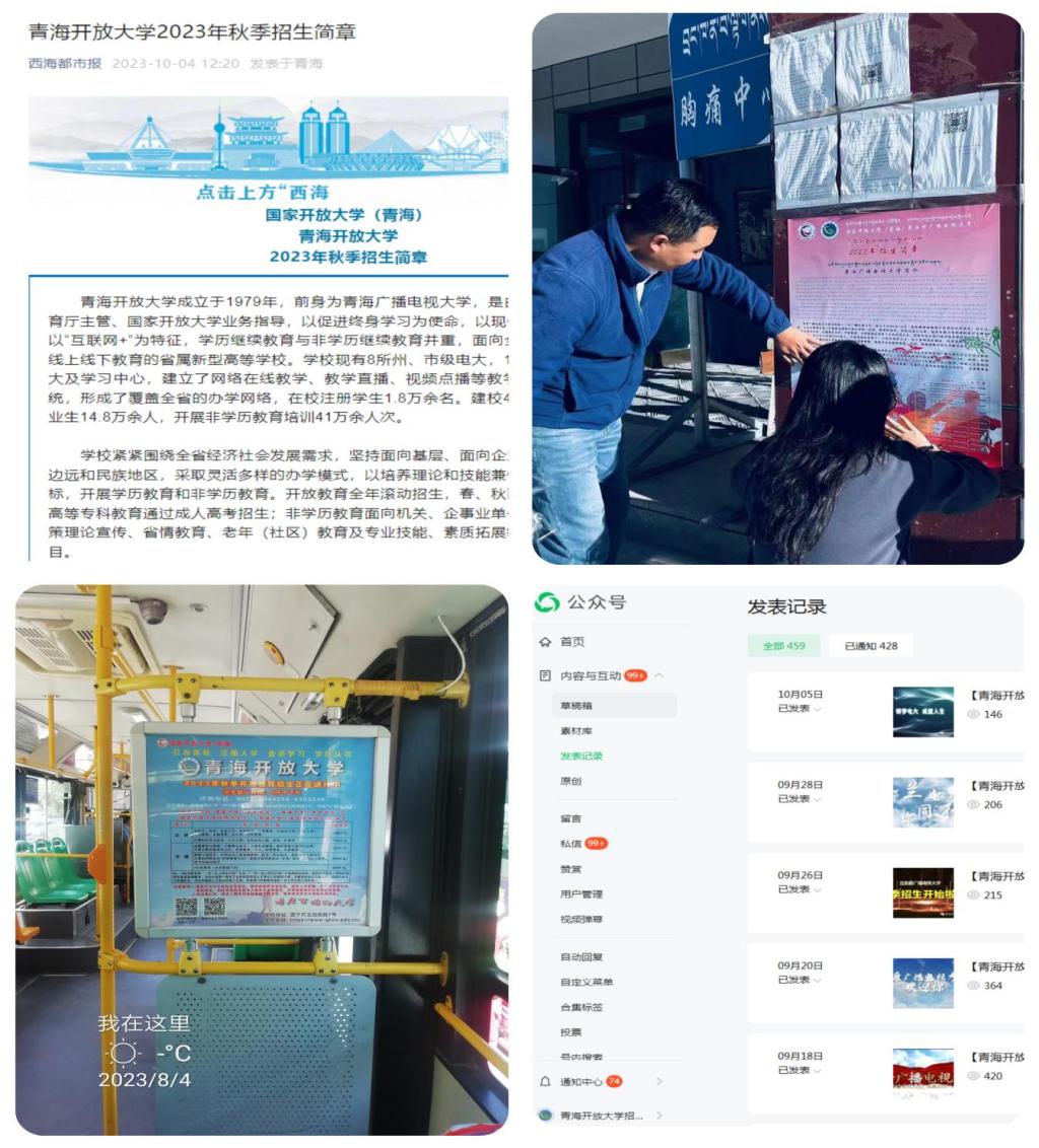 创新模式,扩大宣传。学校统一制定招生简章在媒体公众号、网页平台发布,在公交车投送车载广告,利用微信群、QQ群、抖音等多种途径开展招生宣传,发动广大师生和教职员工持续转发各类宣传广告外,基层电大还积极探索在当地各类媒体和地方政府及教育行政部门官网发布招生简章,制作招生宣传板和印制宣传彩页,同时定制招生文件袋、学生文创用品等,广泛宣传学校和招生政策,提高知晓度。