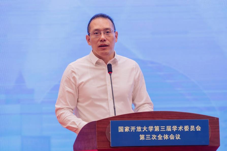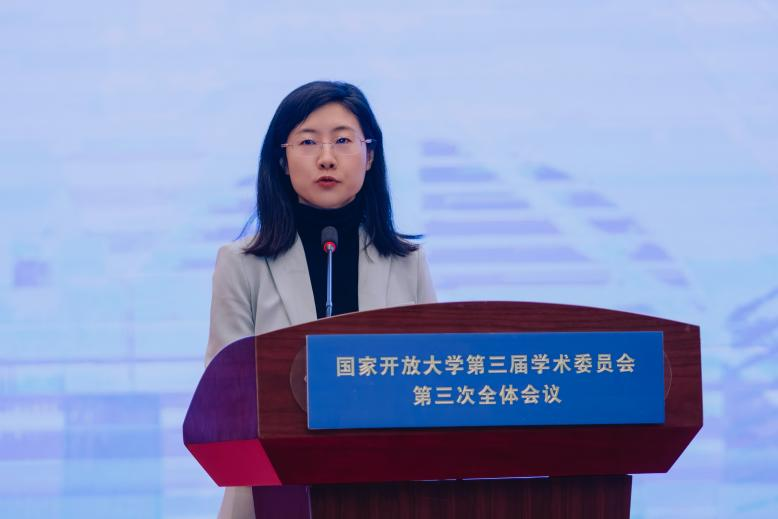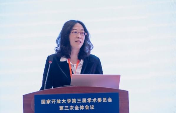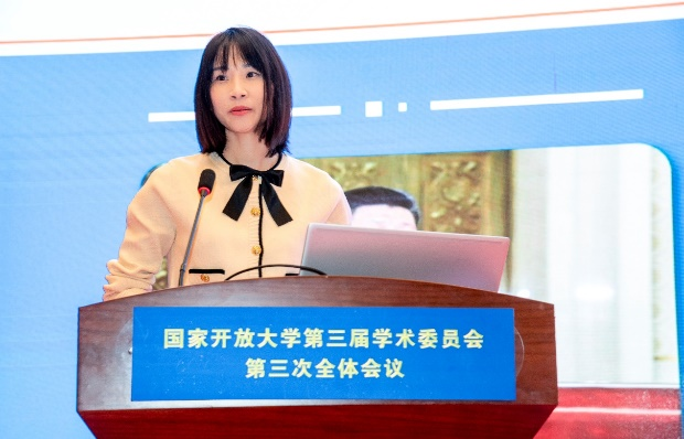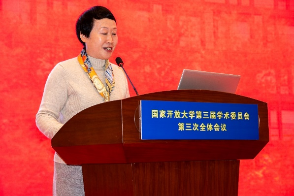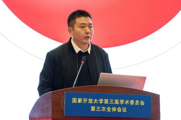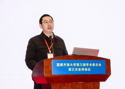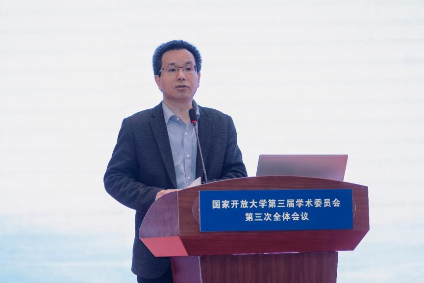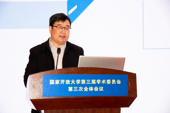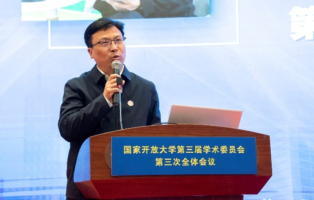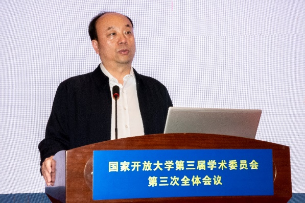 国家开放大学党委委员、副校长、学术委员会主任委员李松教授作题为《创新驱动,勇攀高峰,以高质量学术研究服务中国特色世界一流开放大学建设》的工作报告。