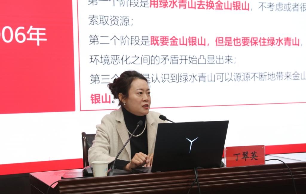 丁翠英教授以《习近平生态文明思想之两山论》为题, 从“两山论”理念的提出与发展历程、“两山论”理念的科学内涵、青海“两山论”的探索与实践和青海践行“两山论”的相关建议4个方面阐释了“两山”理念在新时代生态文明建设、新青海建设中的重要价值,总结了青海全面践行习近平生态文明思想、不断拓展“两山”理论的实现转化路径和加快推进生态友好的现代化新青海建设、努力让有颜值的绿水青山变成有价值的金山银山的宝贵经验和重要启示。