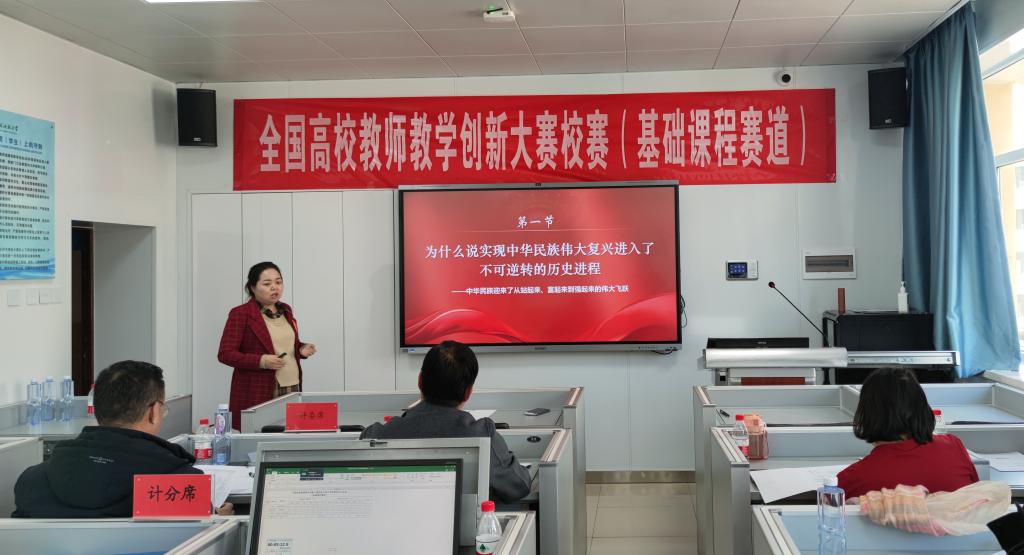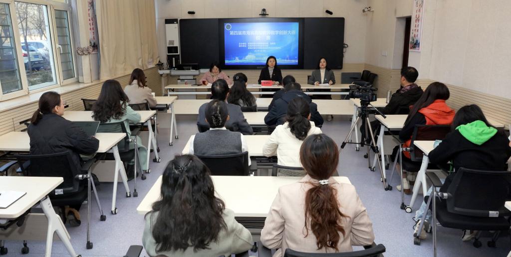 为确保比赛的公正公平,除校内评委外,学校特邀请青海大学、青海民族大学的专家教授担任评委。校赛分基础课程与课程思政两个赛道,采取现场课堂教学与说课答辩两个环节进行。参赛教师从教学理念与目标、教学内容、教学过程与方法等维度展现了教学创新设计与成效,得到了现场评委的肯定。评委们按照评分标准,就如何深挖教学痛点、创新教学方式、凝练创新成果、完善材料细节等方面提出改进意见和建议。