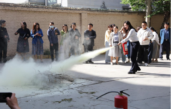 讲座结束后,组织全体人员进行了现场模拟地震和火场疏散演练,大家安全有序到达指定区域,顺利完成疏散演练。教官在火灾扑救演练现场再次演示了灭火器的使用方法,讲解了扑灭火势初期时的注意事项,教职工们亲自上手实践体验,基本掌握了常用灭火器的使用方法。