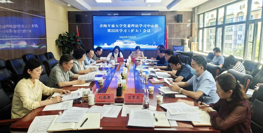 7月3日,青海开放大学党委书记汪琦主持第22次党委理论学习中心组学习(扩大)会议,深入学习贯彻习近平总书记考察青海重要讲话精神。党委理论学习中心组成员参加,各部门主要负责人、各党支部书记列席。