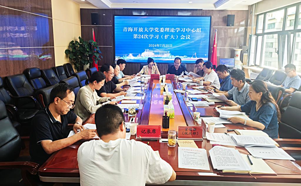 7月25日下午,青海开放大学召开2024年第24次党委理论学习中心组学习扩大会议,专题学习研讨党的二十届三中全会精神。校领导班子成员、各部门负责人、各党支部书记参加。校党委副书记、校长尚玛主持。