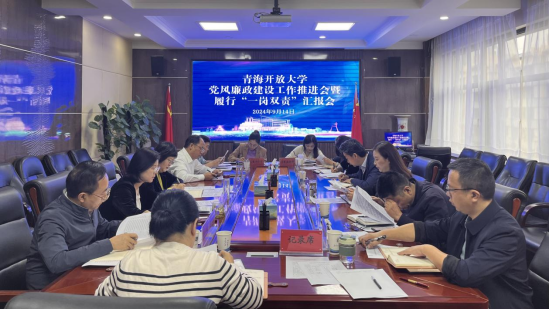 9月14日上午,青海开放大学召开2024年党风廉政建设工作推进会暨履行“一岗双责”情况汇报会,党委书记汪琦主持会议并讲话,校党委班子成员、各部门主要负责人、党支部书记参加会议。
