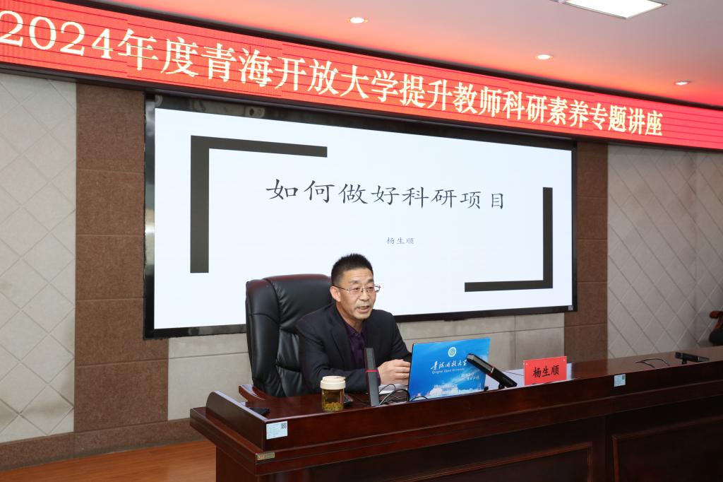 2024年10月12日,为进一步提高我校教师科研素养和科研能力,增强科研创新意识,青海开放大学质量监控部杨生顺教授面向全体专业技术人员开展了题为《如何做好科研项目》的专题讲座。校党委副书记、校长曲江尚玛出席讲座。