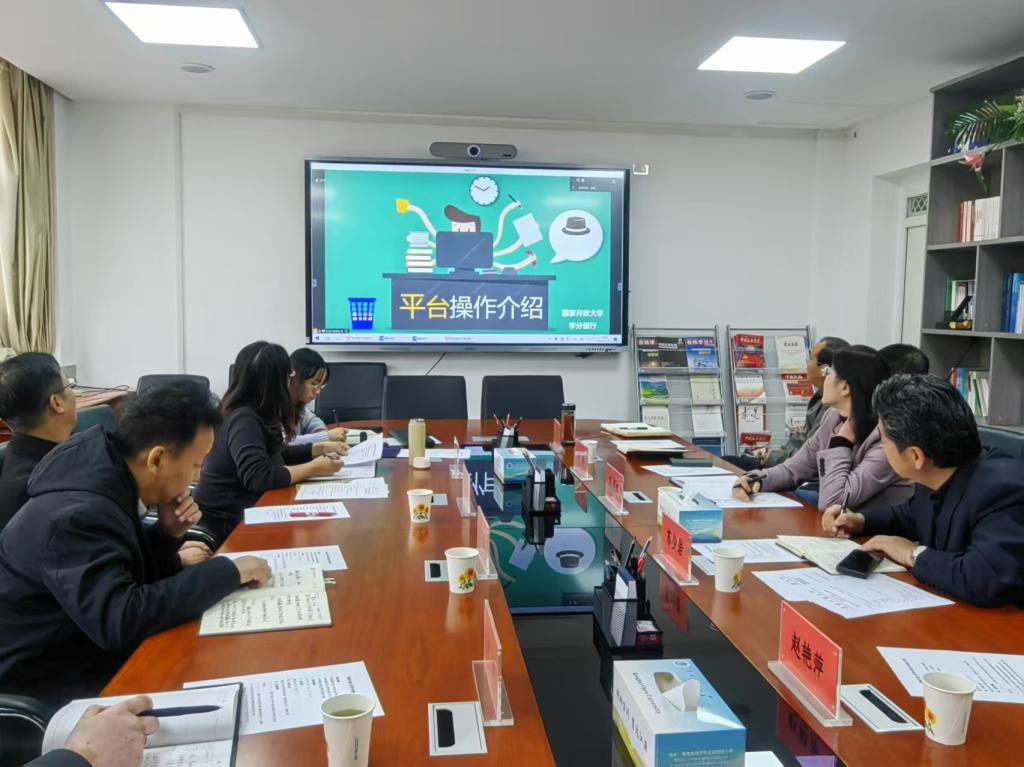为有效推动学分银行建设试点工作取得实效,落实学校“1+7”对口支援任务,11月19日,青海开放大学联合国家开放大学召开2024年度学分银行工作研讨会,共同探讨学分银行的建设与发展。校党委委员、副校长刘建红出席会议,终身教育服务部、教务处、信息技术部、人文理工学院负责人及相关工作人员参加研讨,会议还邀请了国家开放大学学分银行部、国开在线以及湖北开放大学学分银行的专家参加研讨并作专题介绍。