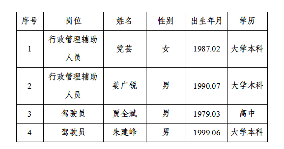 根据《青海开放大学临聘人员管理办法》有关规定,青海开放大学公开招聘行政管理辅助人员(临聘人员)、驾驶员(临聘人员)已经完成面试、体检、政审等工作,现将4名拟聘用人员相关信息进行公示。公示期为2025年11月5日至11月7日。公示期间,如对拟聘用人员有异议,请以来电或书面形式反映。反映情况时应署真实姓名和联系方式,匿名反映不予受理。