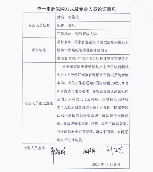 青海开放大学国家普通话水平测试信息采集及人脸防作弊系统硬件设备升级项目单一来源采购方式专家论证意见公示