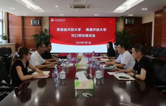 7月1日上午,贵德开放大学校长周晓峰一行三人前往江苏南通开放大学开展调研。双方聚焦对口支援工作召开专题座谈会。南通开放大学副校长薛亮出席会议,相关职能部门负责人参与座谈,座谈会由社会教育中心主任陈晓军主持。