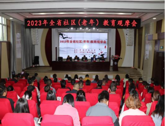 为贯彻党的二十大精神,全面落实《2023 年青海省 终身教育工作要点》中老年教育工作相关要求, 着力提 升和完善青海老年开放大学办学水平,推进全省老年教 育高质量发展, 2023 年 5 月 25 日,青海开放大学 2023 年社区 (老年 ) 教育观摩会在互助县广播电视大学隆重 召开。 青海省教育厅副厅长宋磊、 教育厅职成处处长赵 晓伟、 青海开放大学副校长刘青、互助县人民政府副县 长代朝艳、互助县教育局局长郑万先以及全省各个开放 大学主管领导莅临了本次会议,青海开放大学副校长刘 建红主持会议。