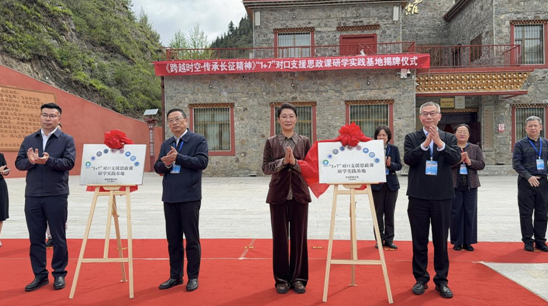 青海在线网  (文图/况玉)为推进新时代思政教育、深化“1+7”对口支援帮扶,6月18日,“跨越时空・传承长征精神”“1+7”对口支援思政课研学实践基地揭牌仪式在青海省果洛藏族自治州班玛县红军沟举办。青海开放大学牵头北京、天津、上海、江苏、浙江、山东、无锡8家开放大学共同揭牌。