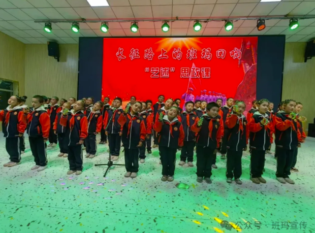 活动在舞蹈《红星闪耀》中拉开帷幕,诗歌朗诵《晚风吹过玛可河》、红色故事《红军在班玛书写北上抗日标语的故事》、大合唱《阿尼玛卿雪山》等节目通过音乐、舞蹈、诗歌等多元艺术形式,将长征精神具象化、情感化,孩子们以艺术为舟,以历史为桨,共同溯源那段镌刻在青藏高原三色班玛的红色记忆。