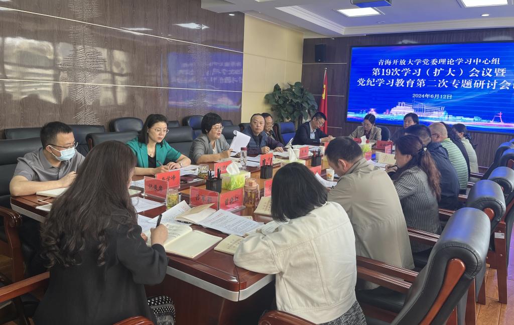 6月12日上午,青海开放大学召开党委理论学习中心组学习(扩大)会暨党纪学习教育第二次专题研讨会议,学习《习近平关于全面加强党的纪律建设论述摘编》相关内容,围绕“知敬畏、存戒惧、守底线”主题开展党纪学习教育第二次研讨。党委班子成员、全校处级干部、各党支部书记参加。会议由党委书记汪琦主持。