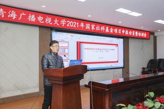 1月18日,青海广播电视大学召开2021年国家社科基金项目申报动员暨培训会议, 以加强教师科研创新能力和学术诚信建设,助推学校教育教学高质量发展。特邀专家中共青海省委党校朱宏才教授、校领导、全体专兼职教师及其他专业技术人员参加,苏少岩主持会议。