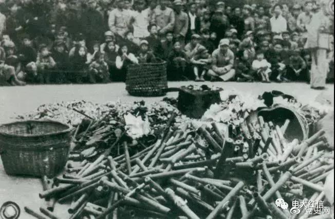 1950年2月24日,政务院发出《关于严禁鸦片烟毒的通令》。图为政府收缴的烟具和赌具。