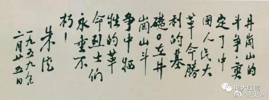 1959年2月25日,朱德为井冈山革命烈士的题词。