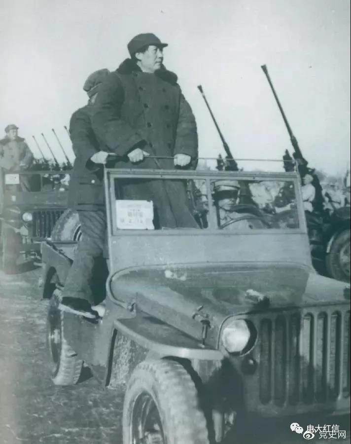1949年3月25日,毛泽东在北平西苑机场检阅部队.