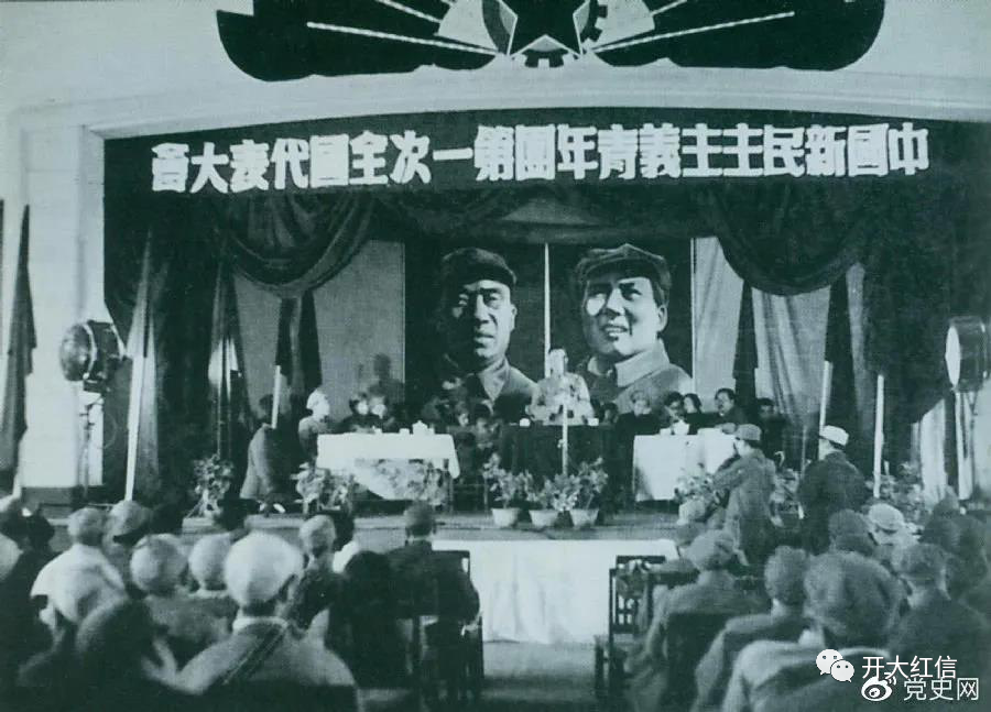 1949年4月11日,中国新民主主义青年团第一次全国代表大会召开。图为大会会场。