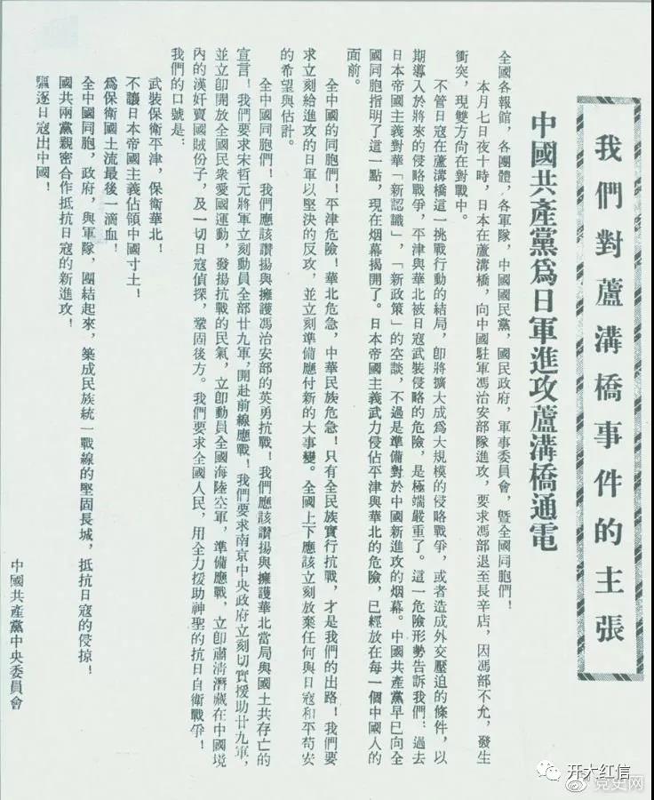 毛泽东为中共中央宣传部起草《关于学习和宣传中央“七七”宣言的通知》。通知指出:宣言应在党内开展讨论,团结全党同志执行中央路线,将党内一部分同志中存在的悲观失望情绪根本扫除。引导党外人士在座谈会中讨论时局,争取他们同意我党主张,团结一切进步分子及中间派和我党一致行动。将宣言中各项要点在报纸刊物上作文发挥或作讲演,例如,美国反动派与中国反动派互相勾结危害中国;一切反动派进攻必须打败与能够打败;中国法西斯猖獗不是表示他们强大与有生命力,而是表示他们软弱与回光返照;国际国内民主力量发展壮大足以打败一切反动派;宣言中四项要求的重要性与必须实现;一部分人对国际与中国光明前途认识不足是错误的;爱国主义的统一战线之重要性;团结一切美国民主人士之重要性等。