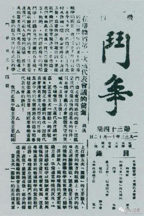 1933年11月5日,刘少奇主持中央苏区农业工会十二县查田大会,并作总结报告。图为《斗争》第34期刊登的目录。