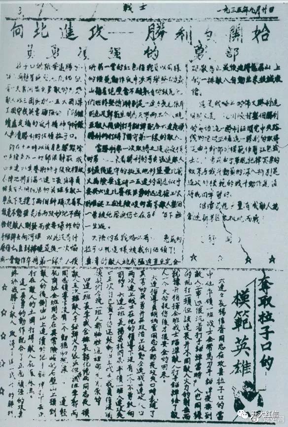 1935年9月20日,红一军团《战士报》刊登的红军攻破腊子口的消息。