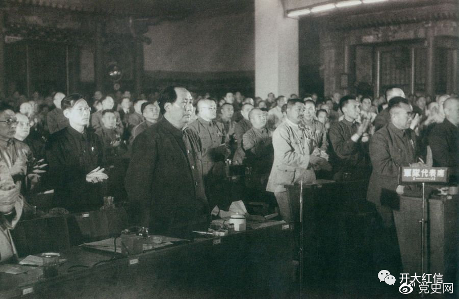 1949年9月30日,毛泽东当选中华人民共和国中央人民政府主席,全场起立,鼓掌祝贺。