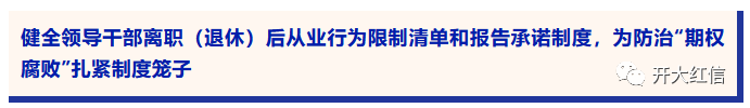 织密织牢遏制“期权腐败”的制度“笼子”。今年2月,杭州市委印发《关于规范领导干部廉洁从业从政行为进一步推动构建亲清政商关系的实施细则(试行)》,对领导干部辞去公职或者退休后,规定期限内严禁接受原任职务管辖地区和业务范围内企业、中介机构或其他营利性组织聘任等7类情况进行明确,同时要求健全领导干部辞去公职(退休)后从业行为限制清单和报告承诺制度。