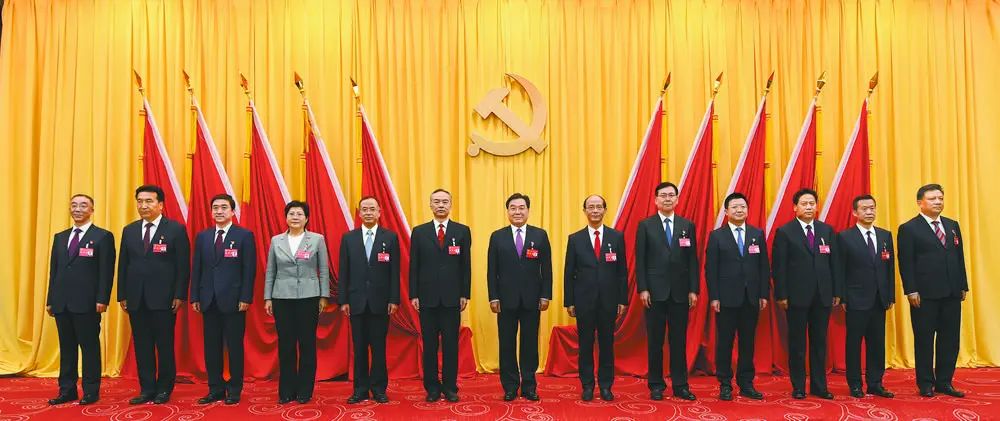 图为中国共产党青海省第十四届委员会常务委员会委员。从左至右依次为:朱向峰、乌拉孜别克·热苏力汗、王大南、赵月霞、王卫东、訚柏、信长星、吴晓军、陈瑞峰、汪洋、才让太、王林虎、班果。张地委 祁国彪 摄