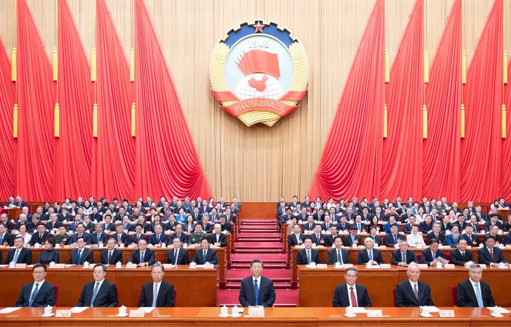 3月10日上午,中国人民政治协商会议第十四届全国委员会第二次会议在北京人民大会堂闭幕。这是习近平、李强、赵乐际、蔡奇、丁薛祥、李希、韩正在主席台就座。新华社记者 黄敬文 摄